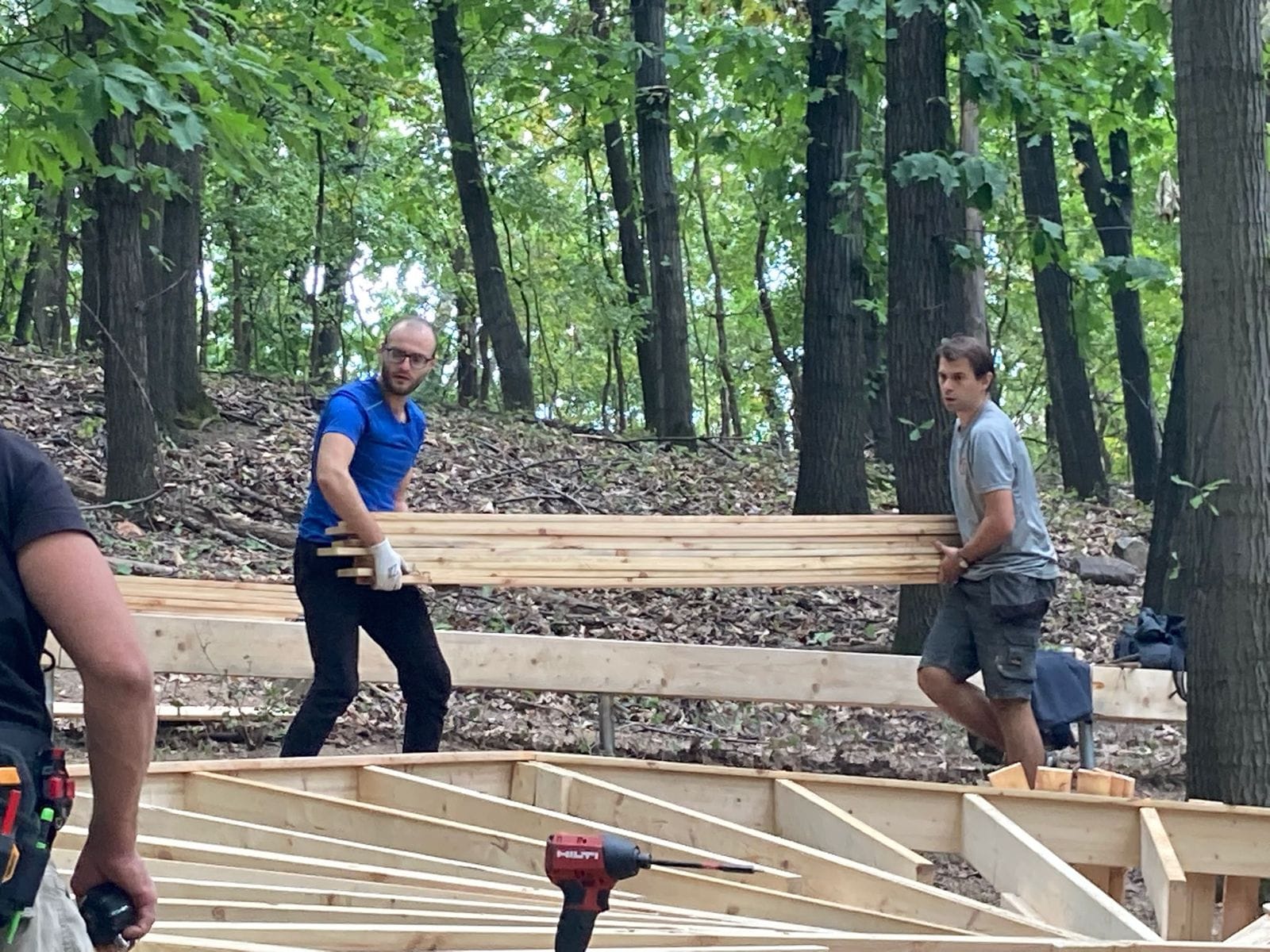 Lucrarea a fost coordonată de Atelier VAST, iar efortul a fost unul veritabil comunitar. La șurub și pană s-au alăturat voluntari de la ISU Caraș-Severin, elevi din cadrul Colegiului Tehnic Reșița, tineri arhitecți și designeri pasionați de construcții sustenabile, dar și locuitori care și-au dorit să contribuie la schimbarea în bine a orașului. Proiectul a beneficiat și de sprijinul unor parteneri privați precum Festool, Rothoblaas, Holver Romania și GDA ARTO SRL, iar hrana voluntarilor a fost asigurată de fermierii mici ai Cooperativei Gugulandia din Armeniș.